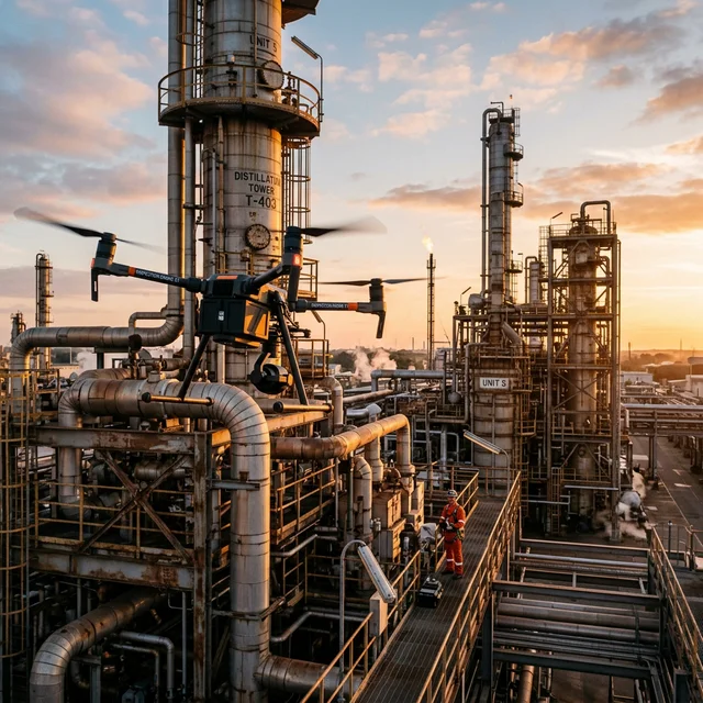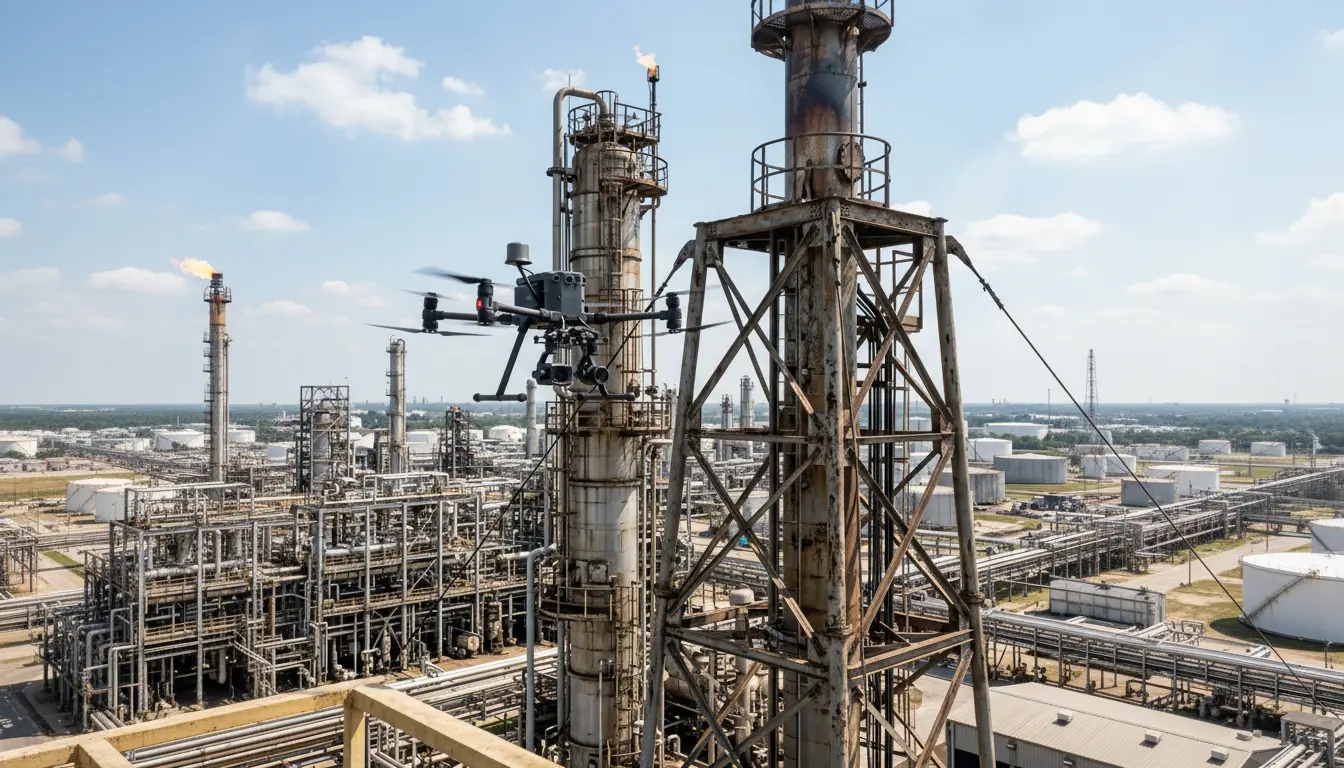 Inspect flare stacks, tanks, and towers without scaffolding or shutdown. Our drones capture sub-millimeter visual, thermal, and UT data while your plant keeps running.